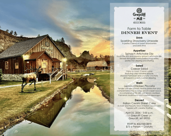 The Greycliff Mill is hosting Farm to Table dinners throughout the year. This dinner is going to be held on...